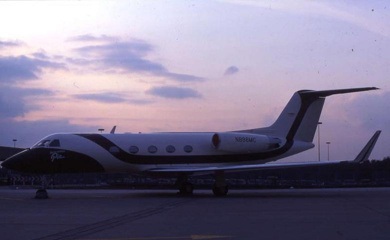 eine Gulfstream III (mit Titel "Here comes Pia" unter dem Cockpitfenster)
