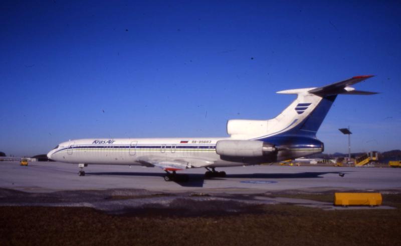 wenigen Russentypen in Salzburg war am 8.1.2005 diese Tupolev Tu 154 der