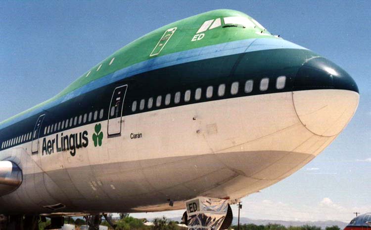 eine Nase einer Boeing 747 der Aer Lingus. Auch hier die Fenster mit Schutzfolie