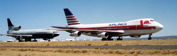 Boeing 747 der "Family Airlines", dahinter eine Lockheed Tri