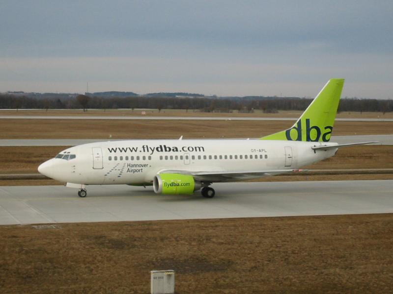 Boeing 737 - 500 der Deutschen BA trägt vorne einen kleinen "Hannover