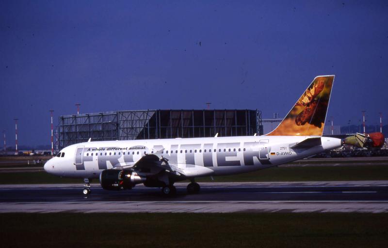 nochmal der Airbus A 319 der Frontier mit dem Karibu im Leitwerk. Innerhalb