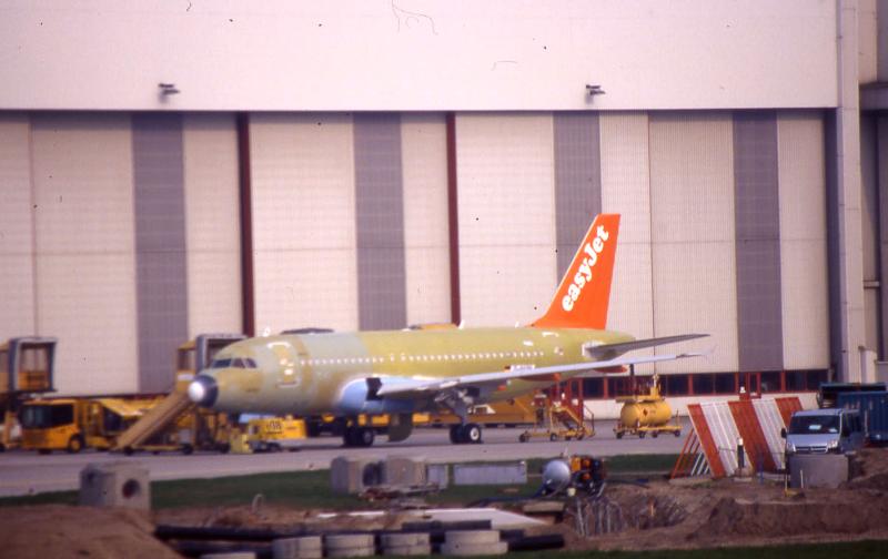 Airbus A 319 der Easy Jet in "primer" Bemalung vor der Montagehalle,