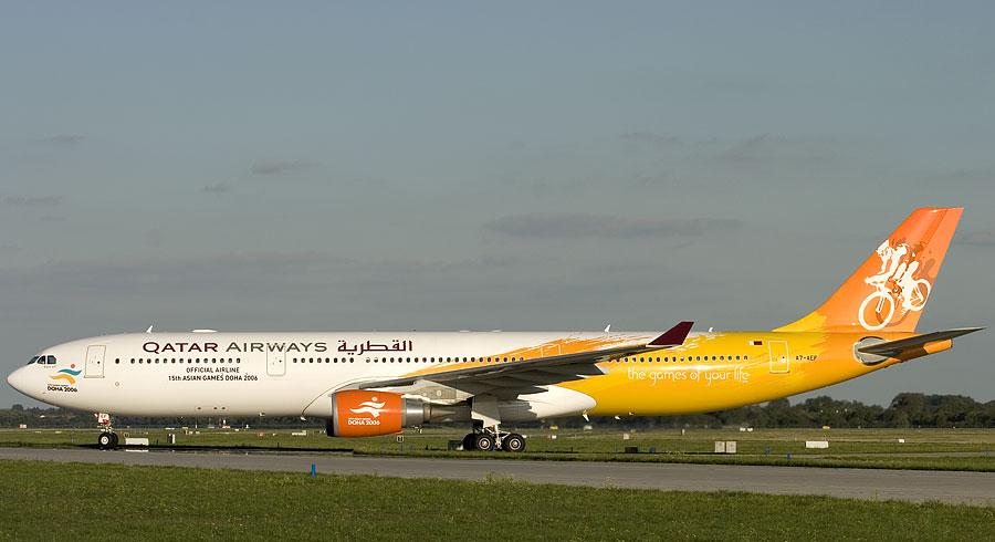weiterer bunter A 330 der Qatar Airways - diesmal der blaue - ("Doha