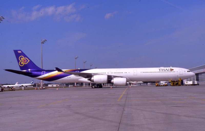 pendelt dieser Airbus A 340 - 600 der Thai Airways (in der neuen Bemalung)