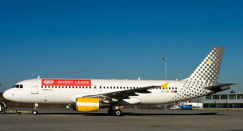 Morgen des 19.2.2008 kam dieser A 320 der Niki in Vueling Bemalung nach