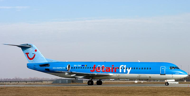 unter anderem diese Fokker 100 der Jetairfly nach München. |