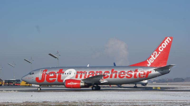 Boeing 737 - 300 nach Salzburg, sie trägt zusätzlich einen "Manchester"