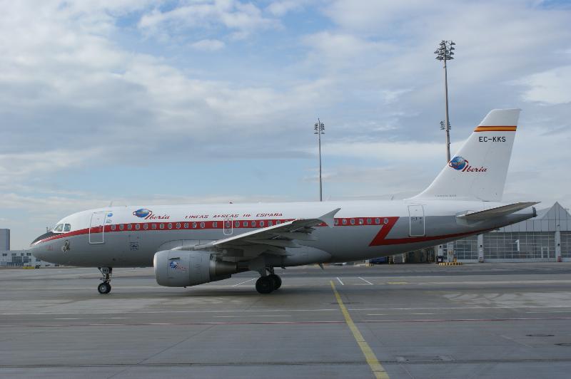 ist dieser Airbus A 319 der Iberia in den "Retro" Farben eher