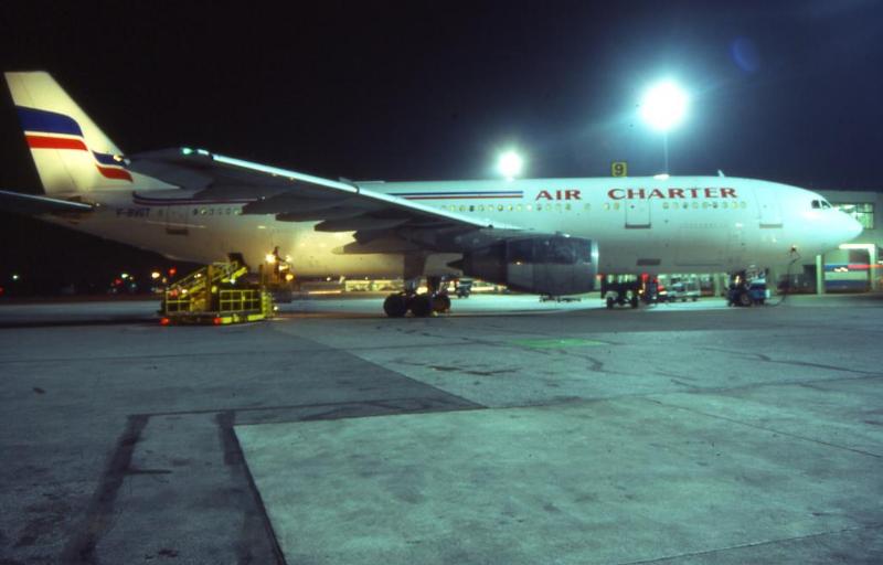 und zu später Stunde dieser Airbus A 300 der Air Charter. |