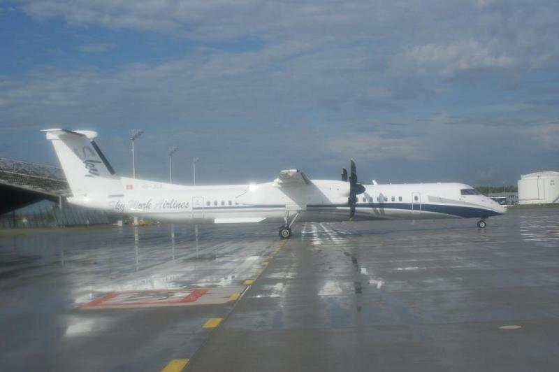 traf diese Dash 8 - 400 der Sky Work Airlines in München ein |