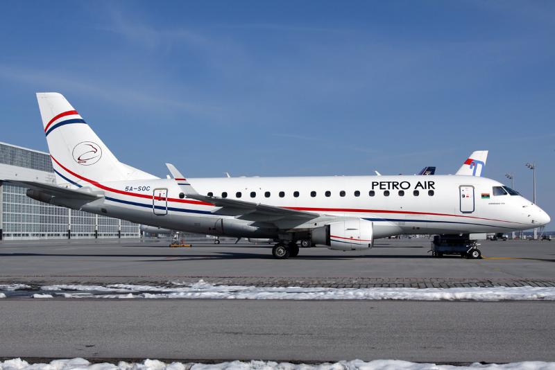 traf diese Embraer 170 der Petro Air zu Wartungsarbeiten in München