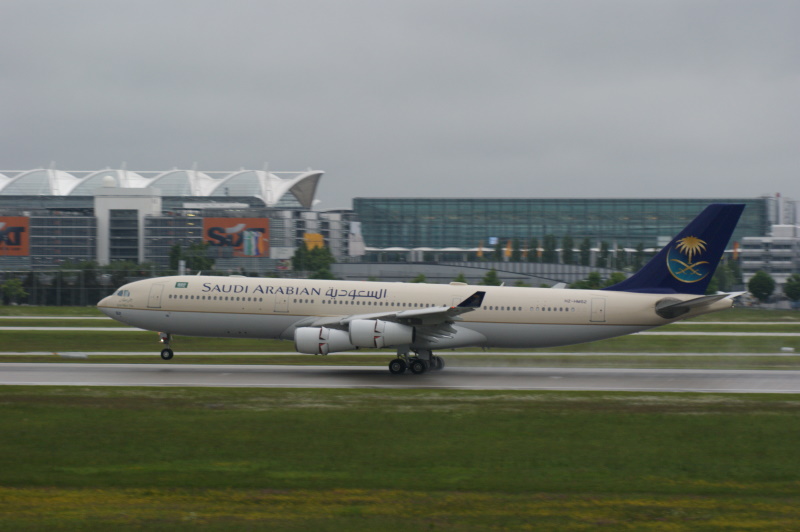 Art stand am 01.06.2013 mit diesem Airbus A 340 der Saudi Arabian in München