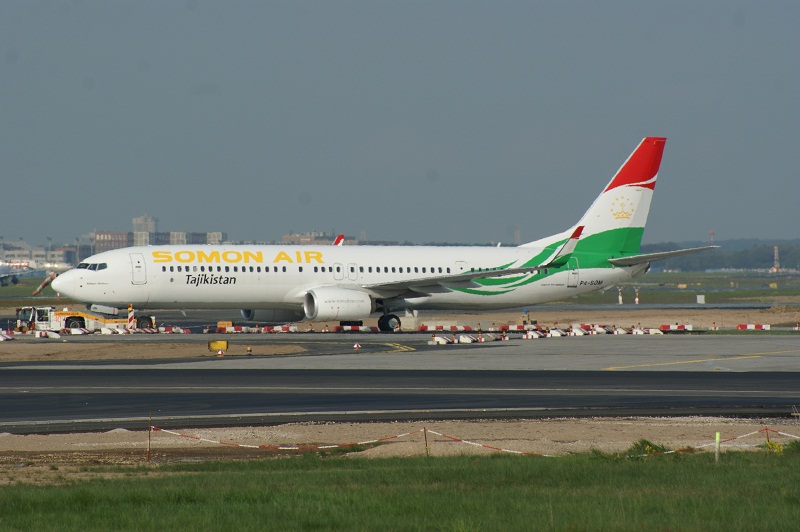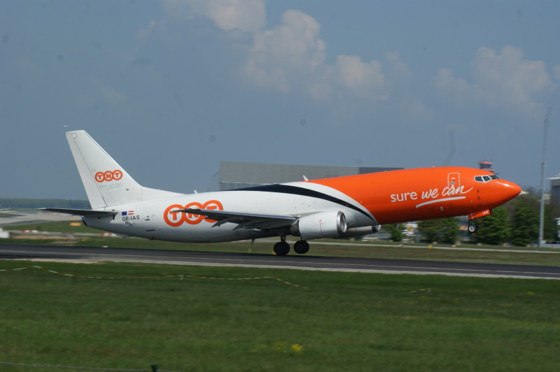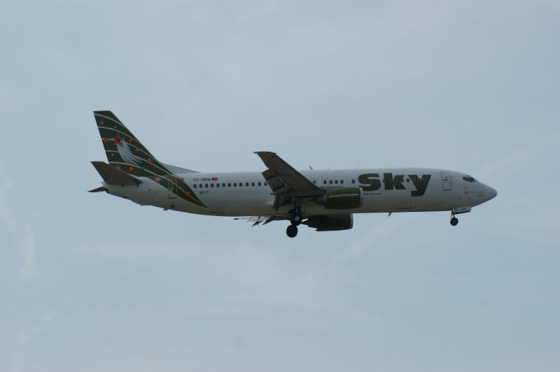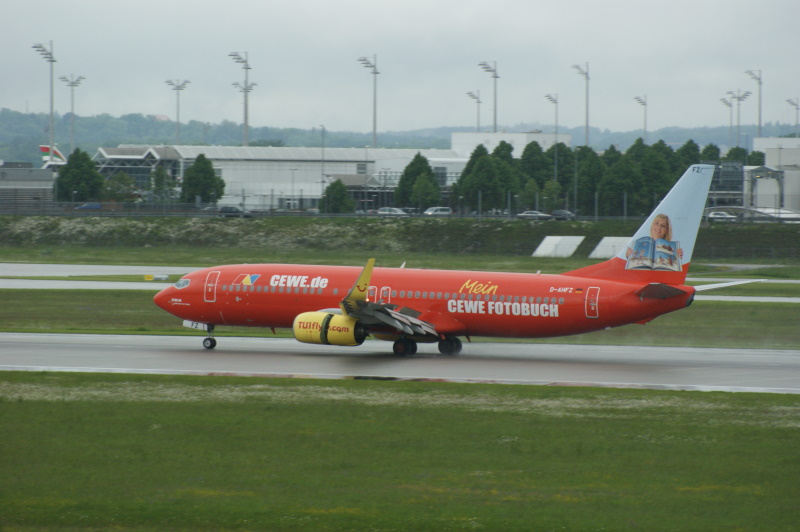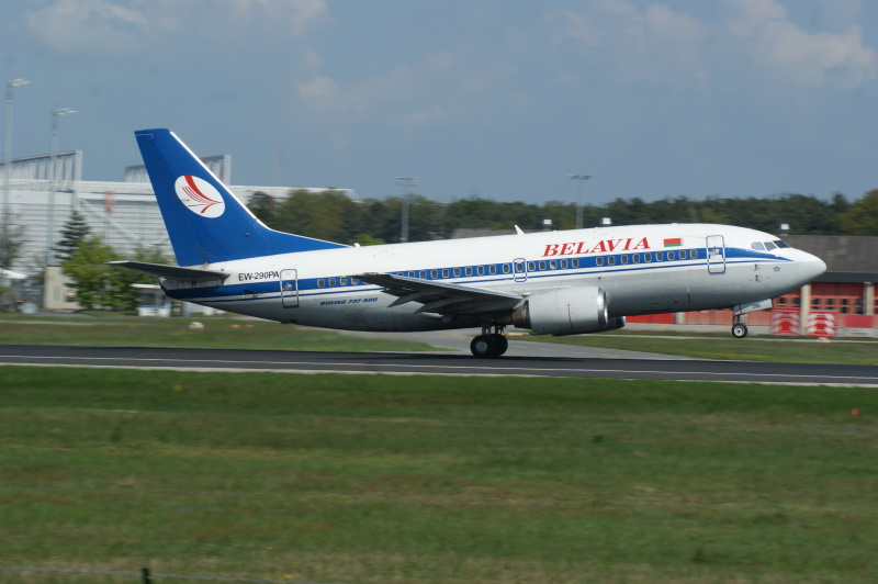 eine Boeing 737 - 800 mit BVB Farben versehen. Hier auf dem Weg zur Südbahn