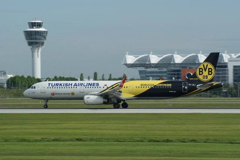 kam dieser Airbus A 321 der Turkish Airlines mit "Borussia Dortmund"