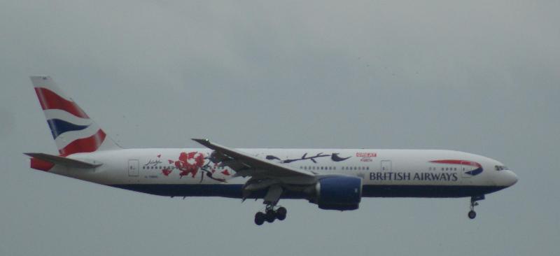 British Airways Boeing 777 mit Rosen - Bemalung, LHR |