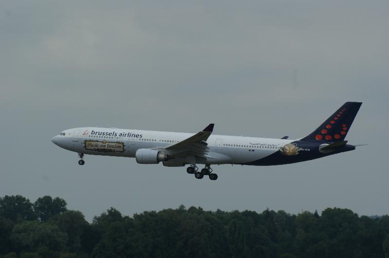 Airlines Airbus A 330 mit einem speziellen Sticker nach München |