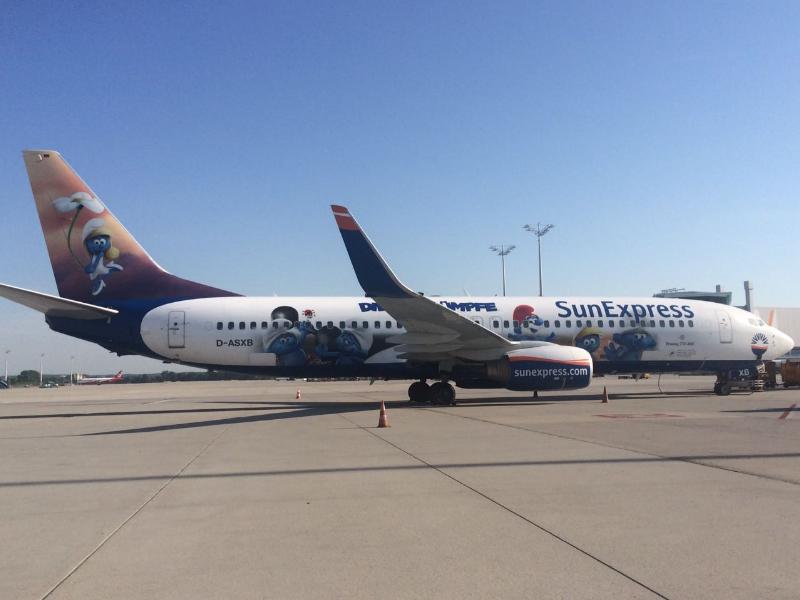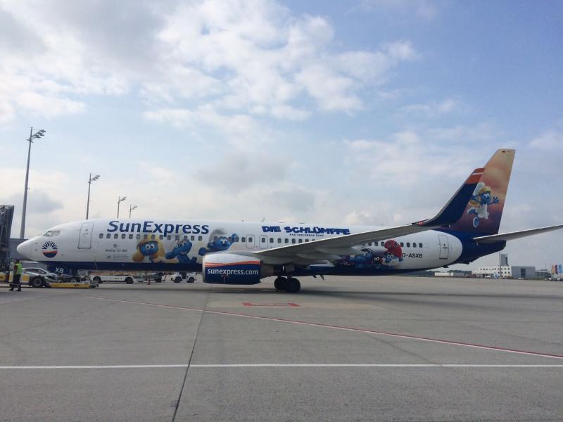 Germany hat eine ihrer Boeing 737 - 800 mit einer "Die Schlümpfe"