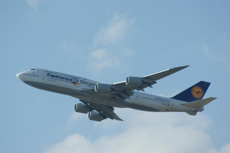 Boeing 747 - 800 mit "Fanhansa Siegerflieger" Titel |