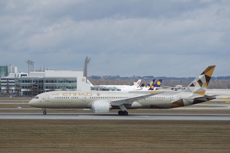 in München anzutreffen ist die Boeing 787 - 900 der Etihad, hier