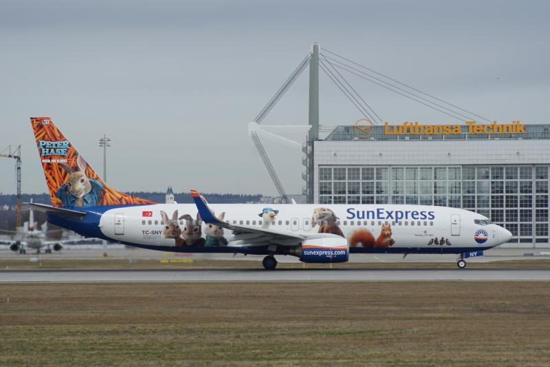"Peter Hase". Hier die speziell bemalte Boeing 737 - 800 von