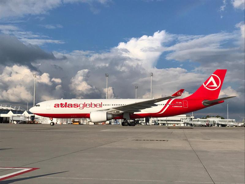 Zum Ende der Pfingstferien am 23.06.2019 kam dieser Airbus A 330 der Atlas Global nach München |
