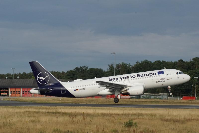 Airbus A 320 mit "Say yes to Europe" Titel |
