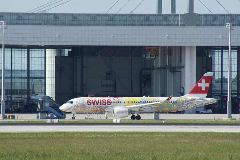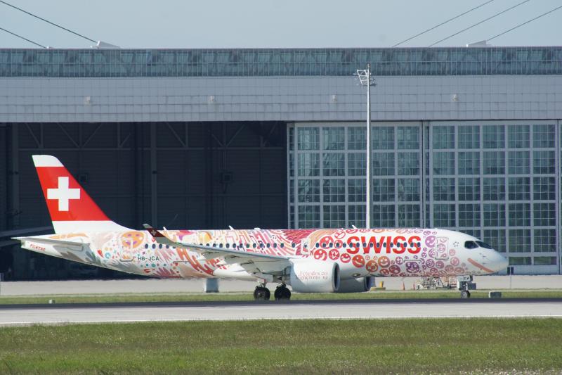 Airbus A 220 in "Fete des Vignerons" Bemalung, linke Seite,