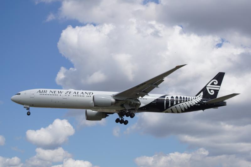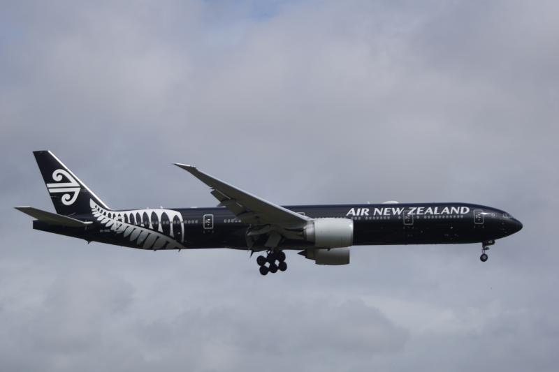 New Zealand Boeing 777 - 300 in "all blacks" Bemalung, LHR |
