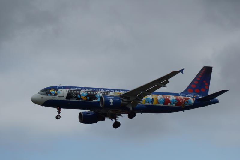 Brussels Airlines Airbus A 320 in "Schlümpfe" Bemalung,