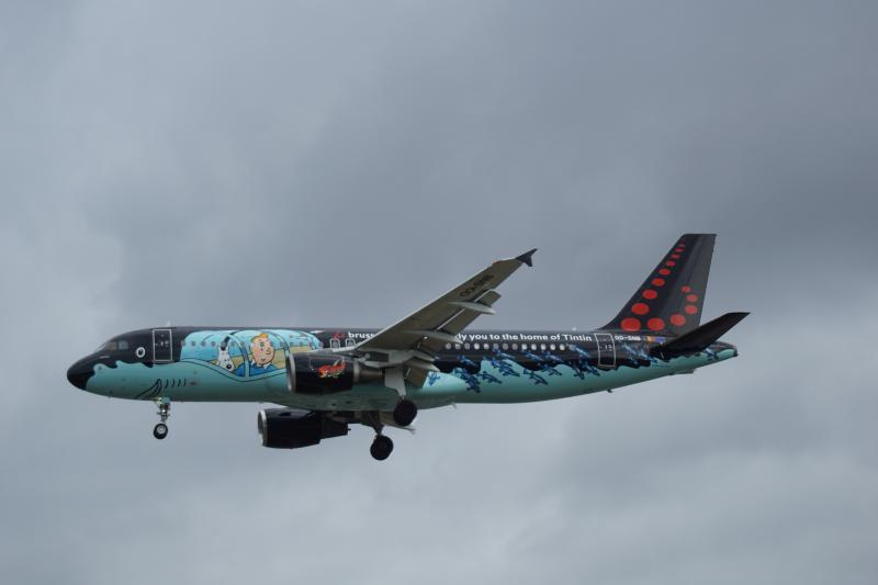Brussels Airlines Airbus A 320 in "Tintin" Bemalung, LHR |
