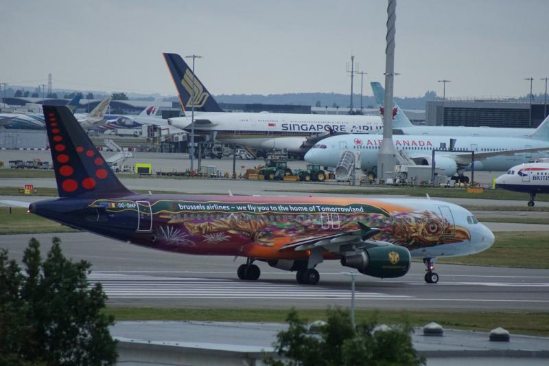 Brussels Airlines Airbus A 320 in "Tomorrowland" Bemalung, LHR |