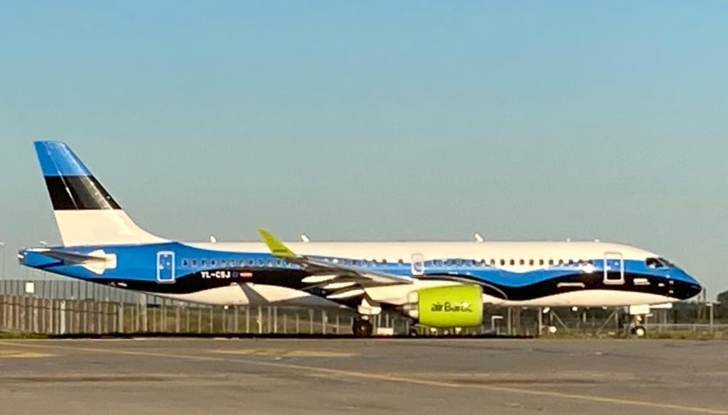 kam bei bestem Wetter dieser Airbus A 220 (CS 300) der Air Baltic in "Estonia