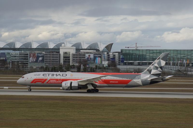 am 14.12.2019 besuchte diese Boeing 787 der Etihad in Formel 1 Bemalung