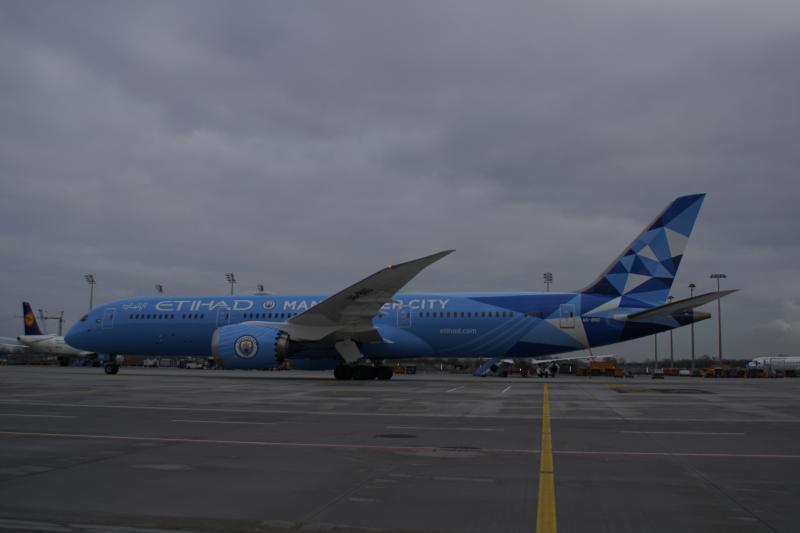 war zum ersten Mal die Boeing 787 der Etihad in "Manchester City"