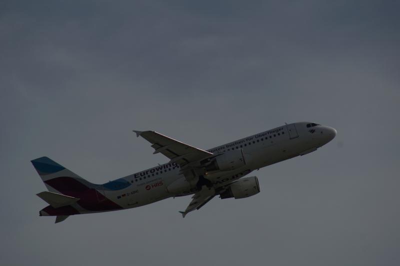 Airbus A 320 der Eurowings trägt "HRS Hotels" Werbung.