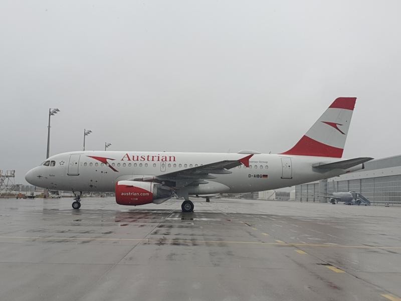 Airbus A 319 der Austrian hat deutsches Kennzeichen, da er von Lufthansa