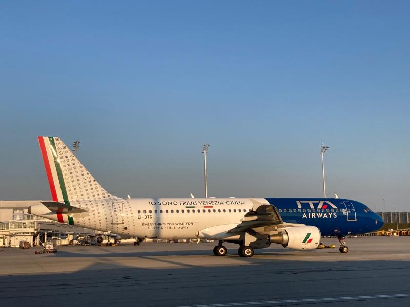 Airbus A 320 mit einer "Io Sono Friuli Venezia Giulia" Bemalung