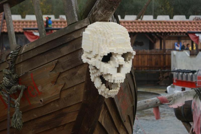 komische Wappen aus LEGO Steinen zieren diverse Wände im Legoland