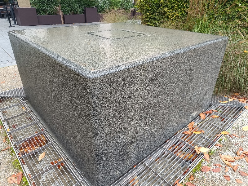 Würfelbrunnen befindet sich in einer Parkanlage am Parzivalplatz