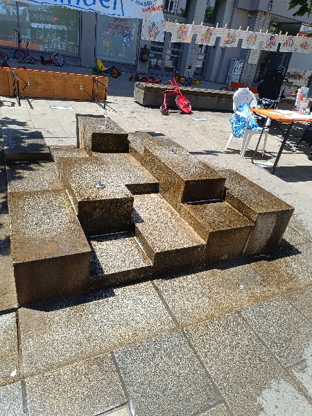 kleine Wasserspiel befindet sich in einer belebten Seitenstraße