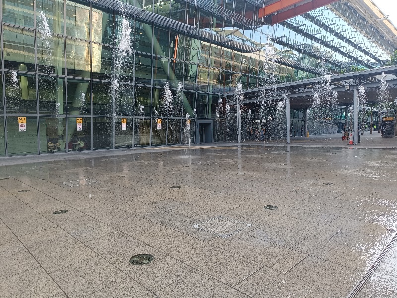 Fontänenfeld mit 50 Bodenfontänen befindet sich am Flughafen