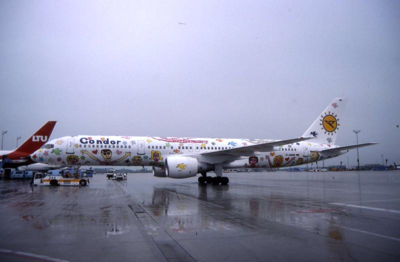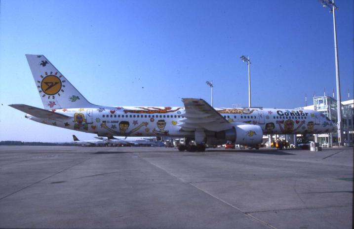 Zeit flog diese Boeing 757 der Condor in einer Sonderbemalung, die als
