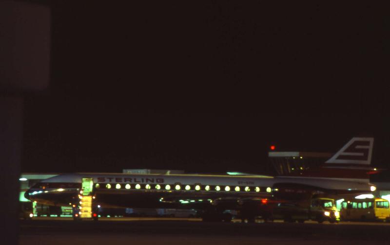 mal eine Nachtaufnahme: Eine Caravelle der Sterling in München Riem.