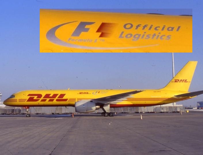 Transportpartner der Formel 1, wie man am Sticker in der Mitte der Maschine