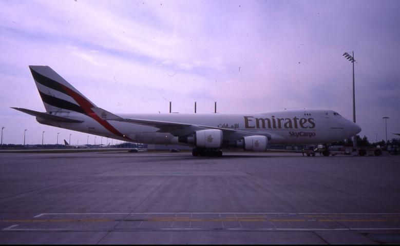 einen Fracht - Sondercharter landete diese Boeing 747-400 der Emirates