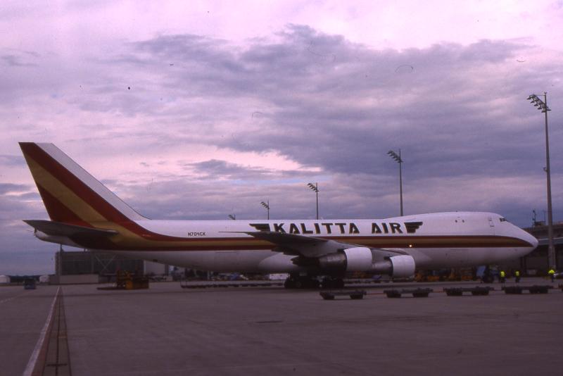 Diese Boeing 747 der Kalitta Air ist am 11.07.2004 für einen Frachtcharter