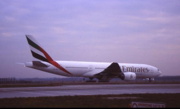 Gast in München war am 24.11.2004 diese Boeing 777 der Emirates.
