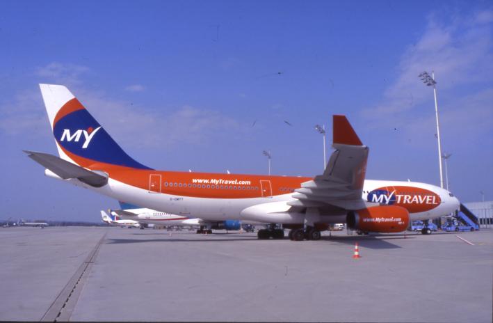 gegen Chelsea London in München, ein Airbus A 330 der My Travel.