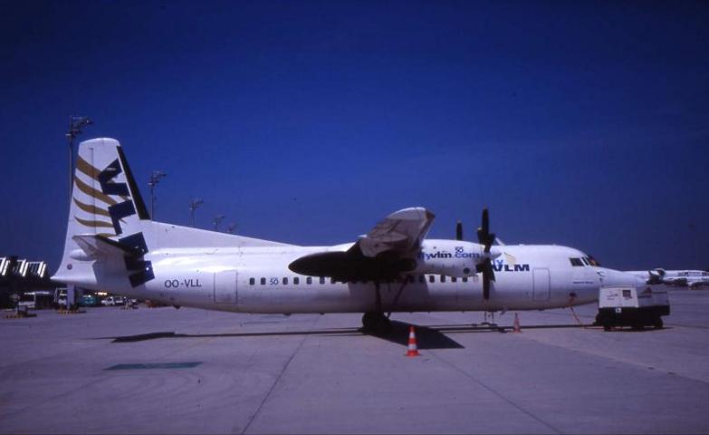 Bemalung trägt diese VLM Fokker 50, die einen Zwischenstopp in München